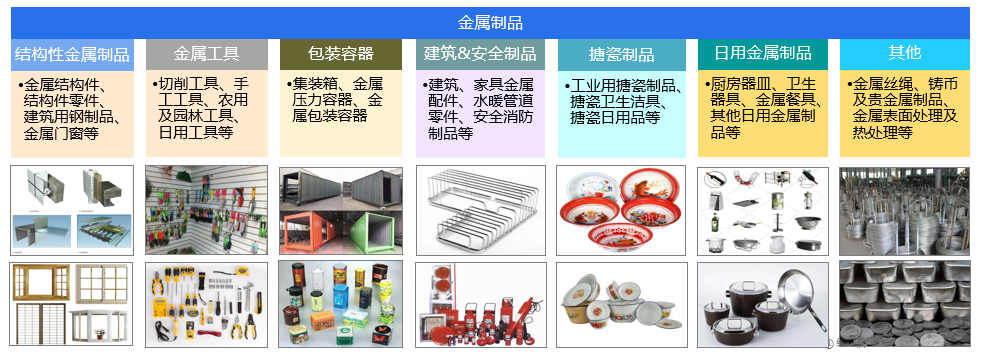 ① 結構性金屬制品制造,包含金屬結構件、結構件零件、建筑用鋼制品(如鋼筋、支架)、金屬門窗等;
